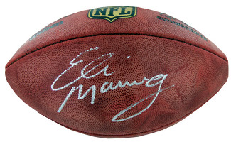 With his second Super Bowl win in four years Eli Manning has joins the ranks of brand name New York sports heroes like Mantle Jeter and Namath. Selected first overall in the 2004 NFL Draft Eli has earned Pro Bowl honors twice and was the MVP of the 2008 Super Bowl when the Giants upset the previously undefeated Patriots. In 2011 he broke the record for most 4th quarter touchdown passes in a season with 15 before leading the G Men through yet another amazing playoff run and Super Bowl triumph over Tom Brady and the Pats. Eli Manning has hand signed this Official NFL New Duke Football. A Steiner Sports Hologram and Certificate of Authenticity is included.