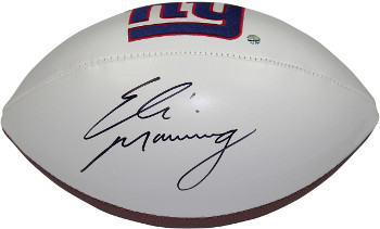 Eli Manning was drafted first overall in the 2004 NFL Draft that same night he was traded to the New York Giants. Since then Eli has gone onto two Pro Bowl's and won the MVP of the 2007 Super Bowl as he led the Giants to victory against the undefeated New England Patriots. Manning is always calm and cool under pressure as in the fourth quarter in 2011-2012 he broke the record for most Touchdown passes while throwing for 4933 yards and 29 touchdowns. Eli Manning continued to elevate his game in the 2011 NFL Playoffs culminating in another last minute game wining drive against the Patriots. Eli Manning was name SB MVP for the 2nd time in his career. Eli Manning has hand signed this New York Giants NFL Jarden White Logo Football (black sig- below panel). A Steiner Sports Hologram and certificate of authenticity is included.