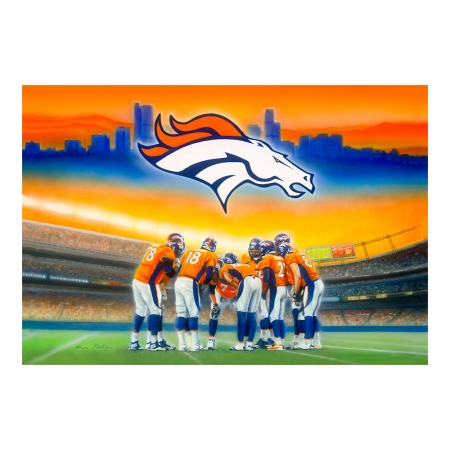 Features- In a Huddle NFL Archival Canvas Giclee Print Rolled.