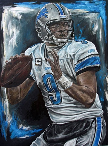 This NFL Licensed painting named Rocket Arm is about Detrout Lions quarterback Matthew Stafford who is known for his ability to riffle the ball into the smallest of windows. He has a rocket arm unlike any this artist has ever seen. Giclee prints are museum quality pieces printed using archival ink on archival canvas with the industries most advanced technology. Prints through this process result canvases that are as detailed and richly colored as an original painting. Fade resistant archival inks and fine art grade printing material guarantee a beautifully crafted piece that will endure.
