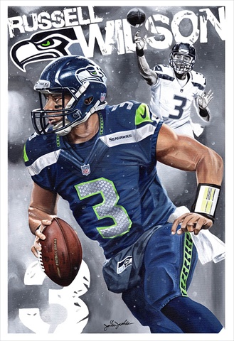 This NFL Licensed Painting is about Russel Wilson. The Seattle Seahawks have been a dominant franchise for several years now and it is largely because of players like Russell Wilson The Hawk. Wilson is one of the best quarterbacks in the League. Giclee prints are museum quality pieces printed using archival ink on archival canvas with the industries most advanced technology. Prints through this process result canvases that are as detailed and richly colored as an original painting. Fade resistant archival inks and fine art grade printing material guarantee a beautifully crafted piece that will endure.