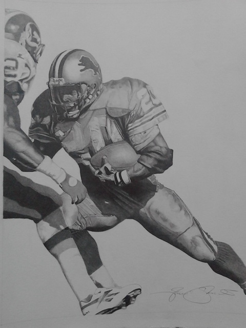 Artist named this NFL Licensed painting as Game changer. One of the most prolific running backs in NFL history is Barry Sanders. He was a major influence in the life of artist Jamie Thomas. His humanity on and off the field was inspirational. Giclee prints are museum quality pieces printed using archival ink on archival canvas with the industries most advanced technology. Prints through this process result canvases that are as detailed and richly colored as an original painting. Fade resistant archival inks and fine art grade printing material guarantee a beautifully crafted piece that will endure.