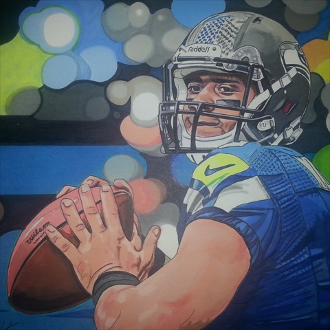 In this NFL Licensed Painting DangeRuss is the title that artist Neal Portnoy has given to Seahawks quarterback Russell Wilson who is now the highest paid player in the National Football League. Giclee prints are museum quality pieces printed using archival ink on archival canvas with the industries most advanced technology. Prints through this process result canvases that are as detailed and richly colored as an original painting. Fade resistant archival inks and fine art grade printing material guarantee a beautifully crafted piece that will endure.