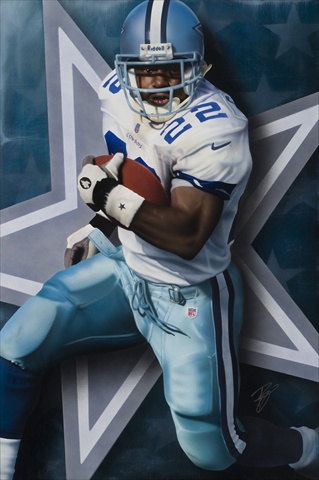 This NFL licensed painting relives Dallas Cowboys Pro Football Hall of Fame running back and NFL all-time rushing leader Emmitt Smith and his run at greatness by surpassing Walter Payton in the record books. Having the great Walter Payton as my hero although thrilled to see it it truly broke my heart. Giclee prints are museum quality pieces printed using archival ink on archival canvas with the industries most advanced technology. Prints through this process result canvases that are as detailed and richly colored as an original painting. Fade resistant archival inks and fine art grade printing material guarantee a beautifully crafted piece that will endure.