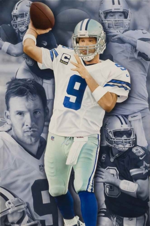 Features- Tony Romo Limited Edition Giclee Canvas Stretched & Wrapped.