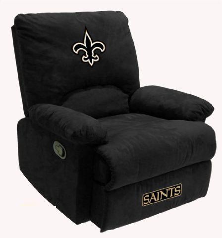 The NFL New Orleans Saints Fan Favorite Recliner made with durable microfiber. This officially licensed recliner features two embroidered team logos applied by a high pressure heat transfer process and stiched.