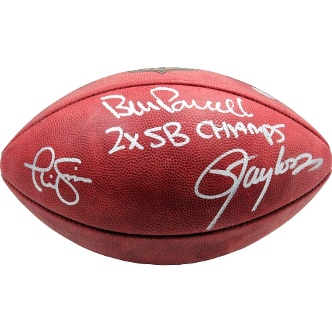 ParcellsTaylorSi mms Triple Signed NFL Football with 2X SB Champs - Bill Parcells Lawrence Taylor & Phil Simms Steiner Authenticated Autographed NFL Football-New York Giants Greats Bill Parcells Lawrence Taylor and Phil Simms have each hand-signed this NFL Football and inscribed it with 2X SB Champs. This piece is perfect for any true Big Blue fan. Parcells was a 2x Coach of the Year and 2x Super Bowl Champion winning coach. He will forever be remembered as the original recipient of the Gatorade bath after winning SB XXI. A three time NFL Defensive Player of the Year and 1981 Defensive Rookie of the Year selected to ten Pro Bowls Lawrence Taylor redefined the linebacker position. Phil Simms led the Giants to Super Bowl XXI against the Denver Broncos in this game Simms completed 22 of 25 passes for 268 yards and three touchdowns. These New York Giants Autographs are Guaranteed Authentic and include a Steiner Sports Certificate Of Authenticity and accompanying tamper-evident Steiner Hologram. The Steiner Seal Means It's Real.